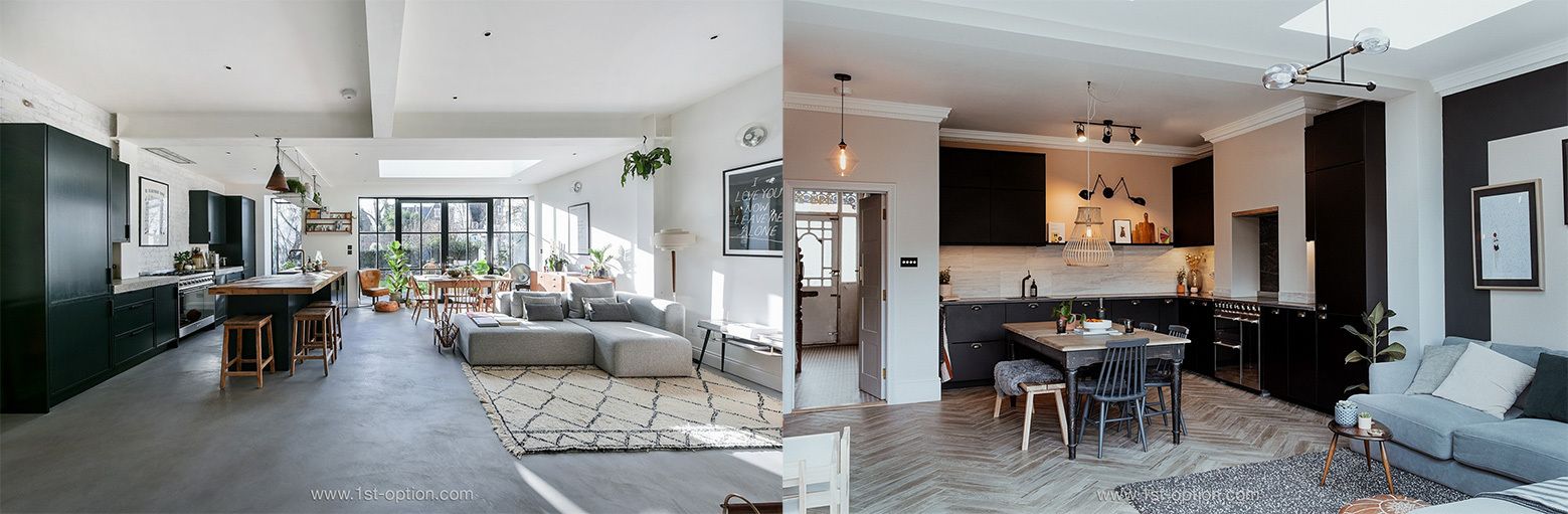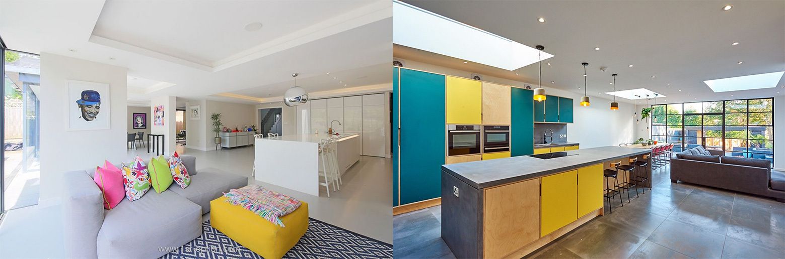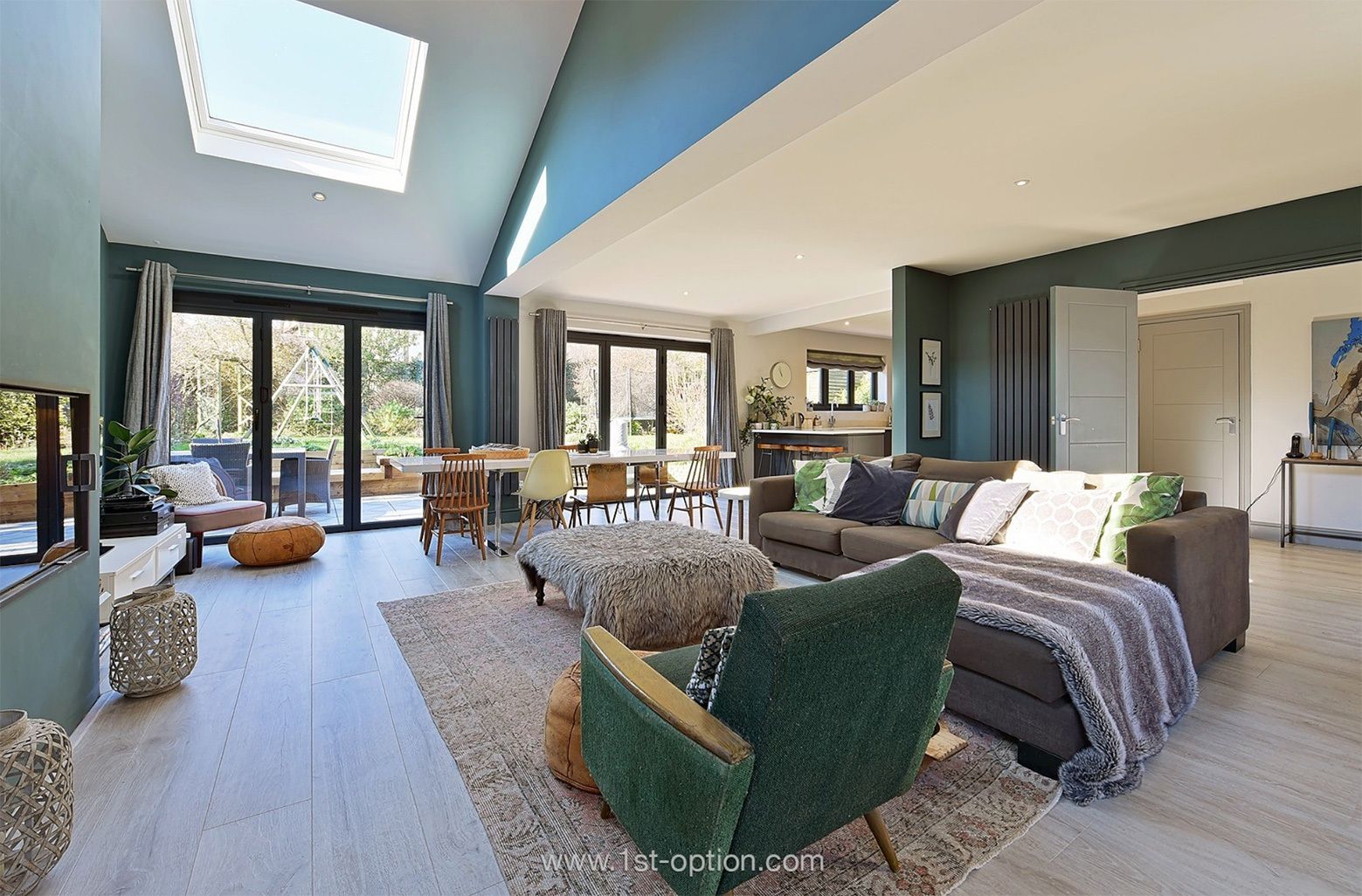 Think about your natural light sources, to keep the room light and airy – a large room can still feel cramped and claustrophobic if it is dark and dingy. Interestingly enough, by keeping the space light and vibrant, you have the ability to actually make the room feel even larger. See if you can implement bi-fold doors, glass walls or skylights to bring in as much light as possible.