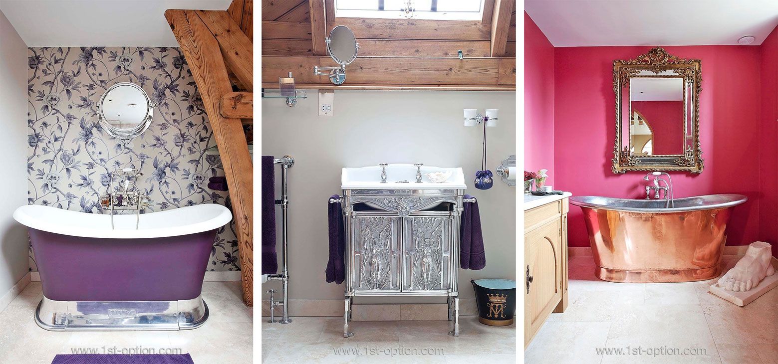 First up in Hertfordshire we have Chapel Lane, a beautiful Victorian church conversion, full of quirky and unusual furniture. Chapel Lane comes complete with two free standing roll top baths in different styles. First up we have the opulent copper bath, set against a vibrant pink backdrop, it’s set to have jaws hanging. A copper bath is such an eye-catching feature in any bathroom. Onto bathroom number 2 with a stunning double ended roll slipper bath with an acrylic purple finish, this elegant bath is the perfect centre point for any shoot!
