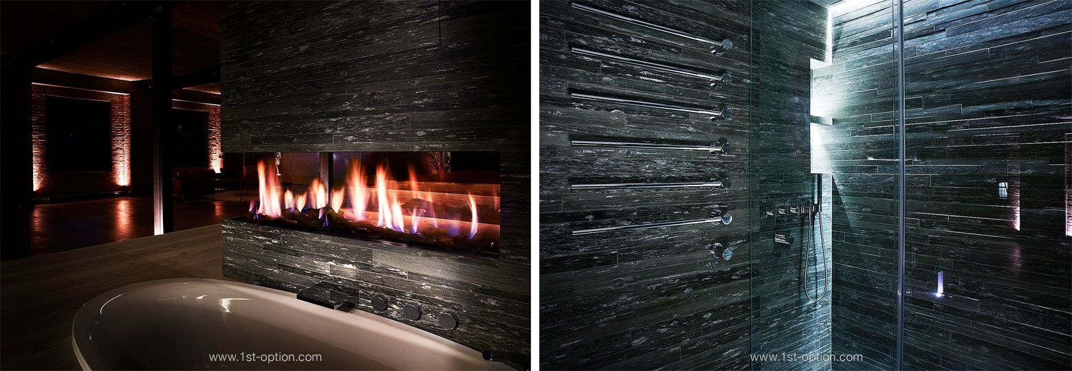 If your searching for a more industrial feel, look no further. Steel is a cool, chic warehouse conversion with steel beams and concrete throughout. Its open-plan space gives a unique feel to the property. With its sunken bath next to a modern indoor fire pit gives this dark interior a truly romantic aesthetic.