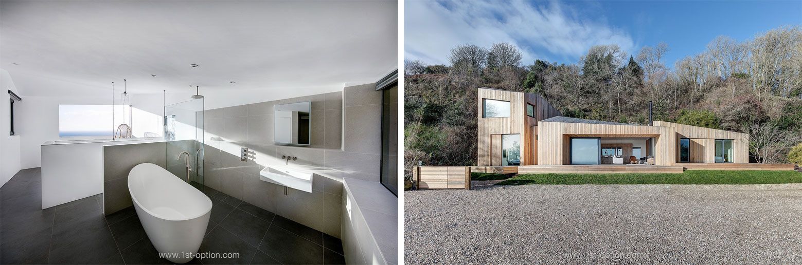 Last but not least, we leave London once again and travel south to Wood View in Dorset. This super modern and minimalist bathroom has the perfect interior for a photoshoot location. We can’t get enough of the grey walls and sleek slipper bath.