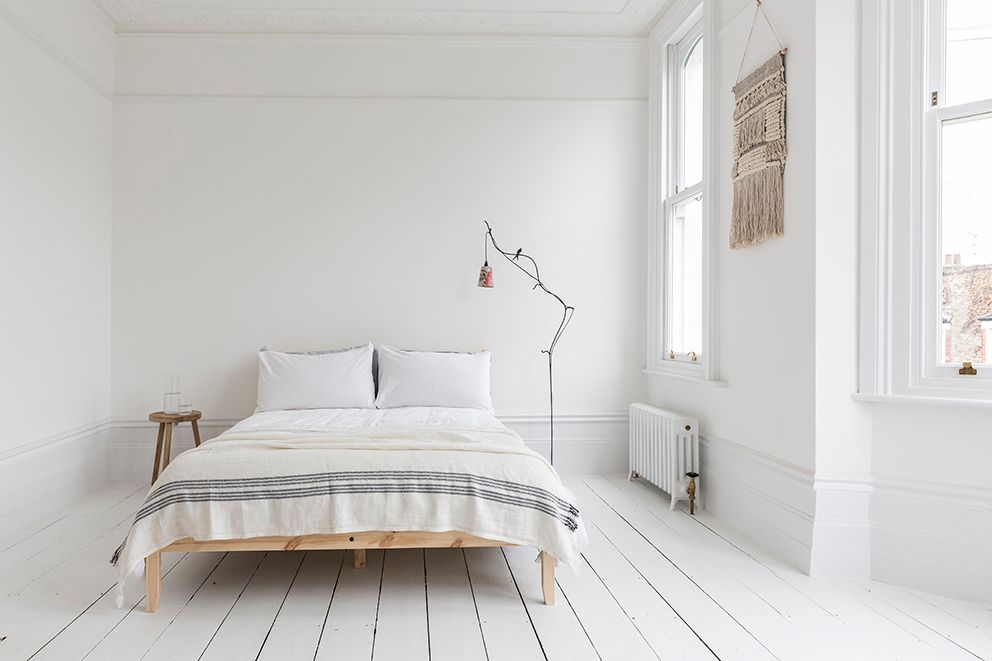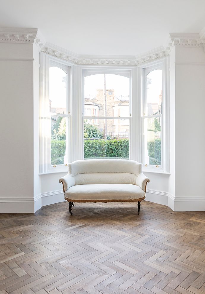 Upstairs we have the main bedroom, which features another gorgeous bay window, cast iron radiators and white painted floorboards. A perfect blank canvas for any shoot.