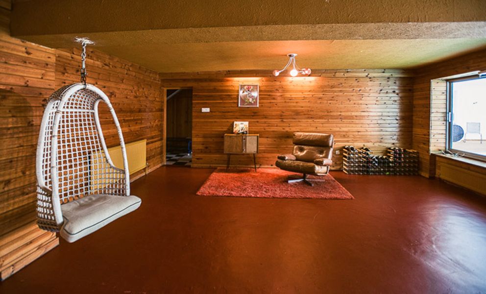 Settle yourself in the rattan hanging chair and ponder where they sourced that magnificent shag?