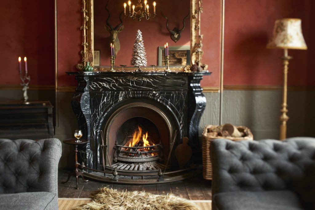 For a cosy Christmas scene, a fireplace is always a great choice.