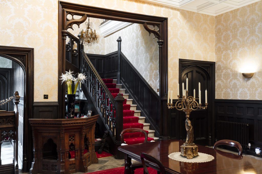 A lovely, classic country house near Salisbury, Belmont House is filled with deep tones of red and green, blended with sophisticated accents of black and gold. The eye-catching, black marble fireplace makes for a striking element in any shoot.