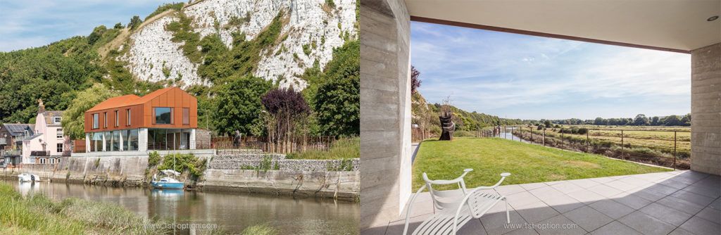 Designed by Sandy Rendel, our next location – Simax – is an award-winning home that had to make our list. Offering something a little different to the rest of the properties on this list, Simax showcases a less conventional garden, set atop the River Ouse in East Sussex. With an indoor/ outdoor patio area to shade from the sun and a stretch of grass that overlooks the river and surrounding nature reserve, Simax is the definition of idyllic.
