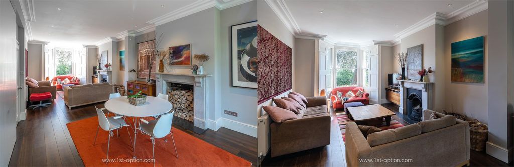 Nick – “Yeah it works much better like this. You see, the four rooms upstairs are well sized, the proportions are really good. But down here we had to knock through the two living rooms to create the open-plan structure you see before you. The music room was small, the two living rooms were small, the kitchen was small. It didn’t flow at all, but now it all comes together.”