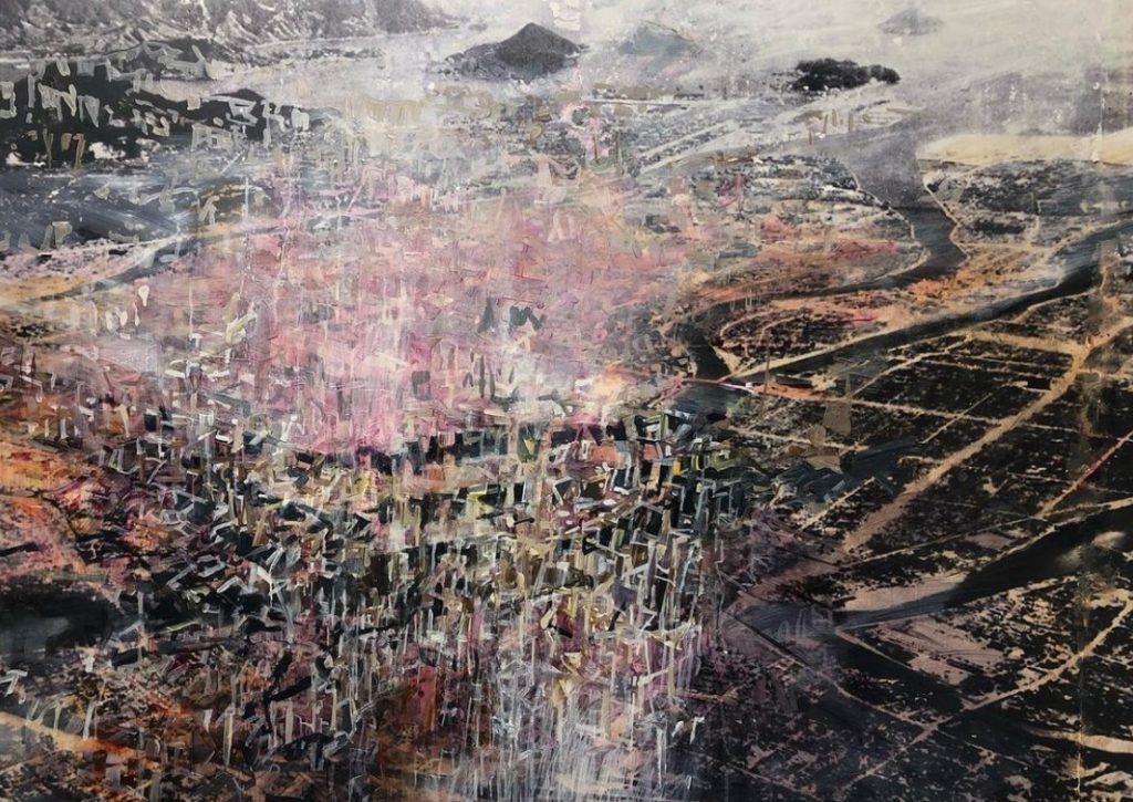 Louise – “Well I work in oils at the moment, which I hadn’t for a long time. It’s only been the past 3 or 4 years that I’ve started using that medium, before that it was anything but; my work was much more water based. So yes, the work in the last ten years has mainly been based on the River Thames, up until about a year ago, when it moved onto great rivers of the world. But it’s mainly been the River Thames because my office is in Limehouse. So I’ve been lucky enough to see Canary Wharf grow from nothing and document it through my work. But that was a long time ago. Since then it’s been aerial cityscapes.”