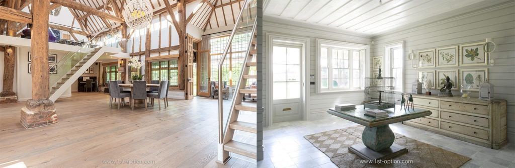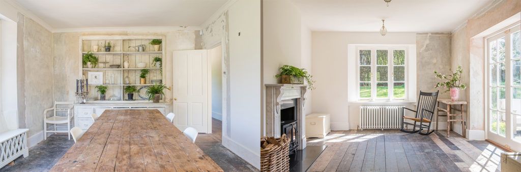 Traditionally, country houses have been decorated with dark and moody colour schemes, with deep woods and brown palettes. However, for the modern aesthetic, you want to create a large and inviting space – achieved through light and airy hues. The aim is to create a neutral backdrop to showcase the more traditional pieces of furniture and accessories; this can be achieved through whitewashed woods, subtle shades of cream and lighter floorboards. When in the kitchen, greys and pale blues work great as they create a light, bright and friendly atmosphere to entertain your family and friends. Pastels are also a fantastic way to accent, as they give you that vibrant pop of colour, without swarming the space. Sage green, mint, dusky rose and taupe are all good choices for warming up a neutral space.