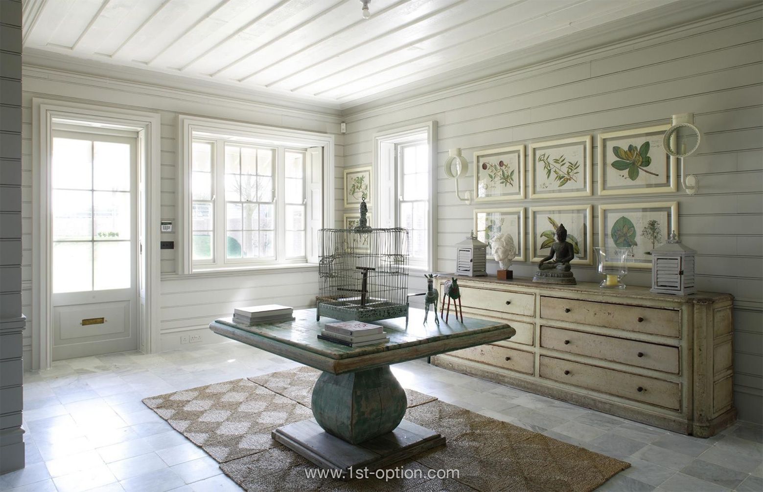 Paired with colonial influences, much of the traditional New England design is heavily based on coastal and nautical prompts. Similar to how the colour palette of the sea lends itself to this style, much of New England’s touches are based on fishing, the navy and even international trading. Within the colour palette, you can expect to see patriotic colours, like the classic red, white and blue. However, sandy beiges, sunny yellows, sky blues and seafoam greens also play a big part. Materials should reflect those that are reminiscent of nautical elements. Mix things up with driftwood, burlap, hessian and wooden cladding. In the modern New England home, it is common to see more industrial elements, the likes of which are commonly found on more contemporary ships, for example cargo lighting and steel chairs or stools.