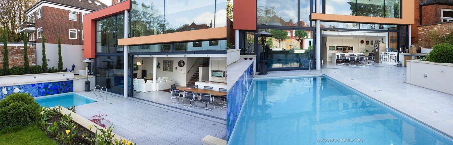 Picturing the ideal summer shoot location, a luxury home resembling something from the Hollywood Hills may come to mind. Teignmouth, with its double-height rear glass extension gives this very feel, whilst being nestled, conveniently, in North West London. A tiled swimming pool sits within the spectacular landscaped garden of this remodelled and converted, double fronted Victorian house.
