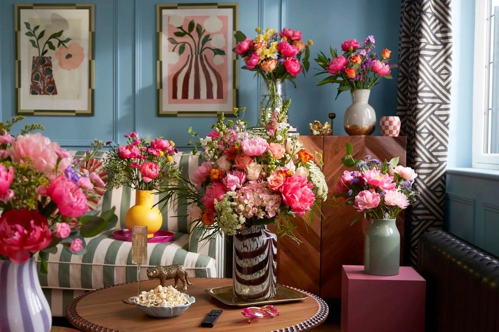Bloom and Wild shot at Otto, A stylish colourful home in North London decorated with a mix of pastels and vibrant colours throughout, the perfect backdrop for their bright peony campaign.