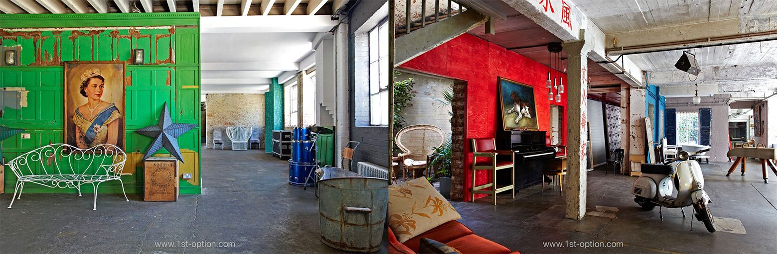 Friendly Place is a warehouse studio, located in South East London. It not only has a dedicated hair and makeup area, but is also set over several floors, with each room offering a different set of quirky furnishings and backdrops. Thanks to its versatility, the shots you are after are provided in abundance. Some of the unusual props that can be found on the first floor include a bed, a green wall divider and a photo of the Queen. Following the distressed/ run down aesthetic of the first floor, other areas include vintage and retro furniture, a Vespa and a pommel horse. It is this versatility and array of fascinating furniture and accents that make Friendly Place ideal for fashion shoots, ranging from streetwear all the way to high end.