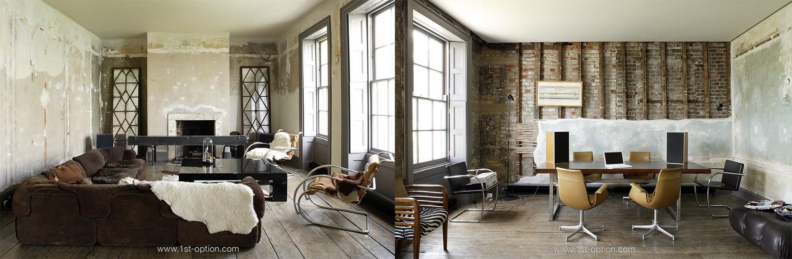 The next property could not be further from Henry VIII Boathouse; Kempshott Road is a five-bedroom Victorian family home, located in South West London. However it is not the type of property or where it’s located that sets it apart from the boathouse – Kempshott Road has been recently restored to an impeccable standard and being set over four floors, there are tons of breathtaking features that make it perfect for fashion shoots. The kitchen is more contemporary in style, with crittal style windows, a polished concrete floor and central kitchen island. It is, however, the other rooms within this outstanding property that really give it its edge for fashion shoots. Neighbouring the kitchen is a large pink living room that has a gorgeous antique feel to it, similarly the front living space, while finished in a royal blue, also has antique features. One room has been transformed into a unique purpose-made bathroom, with a green finish and a free-standing copper bath, while other parts of the house have a real ravaged industrial vibe. Compile all these elements together and the result is an extremely diverse shoot location that can turn its hand to any style of shoot.