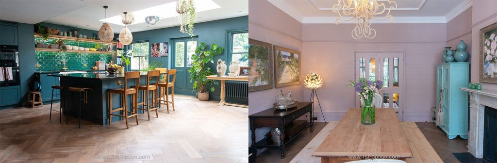 If country chic and contemporary luxe are the overarching aesthetics found at Brook Lodge and Daytona, colour would certainly be the main talking point at Kombu. This fabulous double-fronted Victorian family home, located in South West London is seeping with stylish and tropical details. However, the standout area comes from the open-plan kitchen/ living room; here you will find parquet flooring, a green palette including eye-catching pine green tiles and tons of beautiful flora. Nevertheless, as stated above, it is the abundance of colour that makes Kombu such an exceptional shoot location. The dining room is finished in a luscious pink tone, the pantry is vibrant orange and each bathroom has a different tropical wallpaper – ranging from lemurs and jaguars to pretty flowers. We would recommend editorial shoots at Kombu thanks to its versatility and striking shooting opportunities.