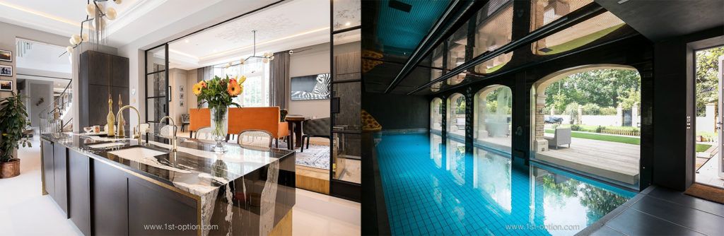 First on our list this month is Bella, a spectacular stately home inspired property, built in 1887 and located in Greater London – not often seen for this style of build. This exceptional shoot location features an extraordinary blend of opulent, eccentric, classic and contemporary design, leaving you with one of the most versatile shoot locations you’re ever likely to see. This is epitomised by the standout areas found all across the location. Take a look at the kitchen/ dining area, partitioned by a striking crittal divider – here you will find a whole host of opulent furniture, a marble kitchen island and period pieces, including cornices and ceiling roses. Other notable touches in this astonishing house include a sweeping marble staircase (set over four floors) leading to the modern spa area, fitted with an indoor and outdoor pool; both of which are divided by a super-cool ‘James Bond’ style lifting glass door. To top off this prodigious property, there is also a gym, a basement bar, a library and two walk-in wardrobes. Due to its host of amenities and size, Bella is ideal for small and large-scale filming as well as photographic stills.