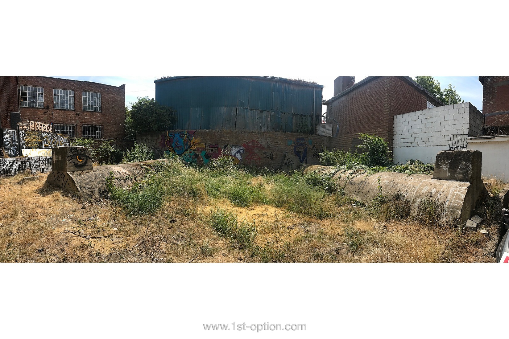 concrete, derelict, distressed walls, floor - concrete, garden, graffiti